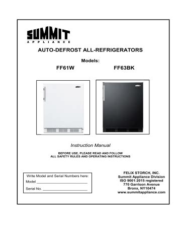 Read summit refrigerator instruction manual Library Binding Gutenberg